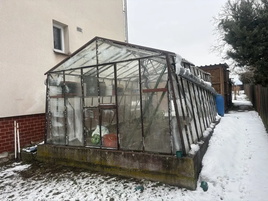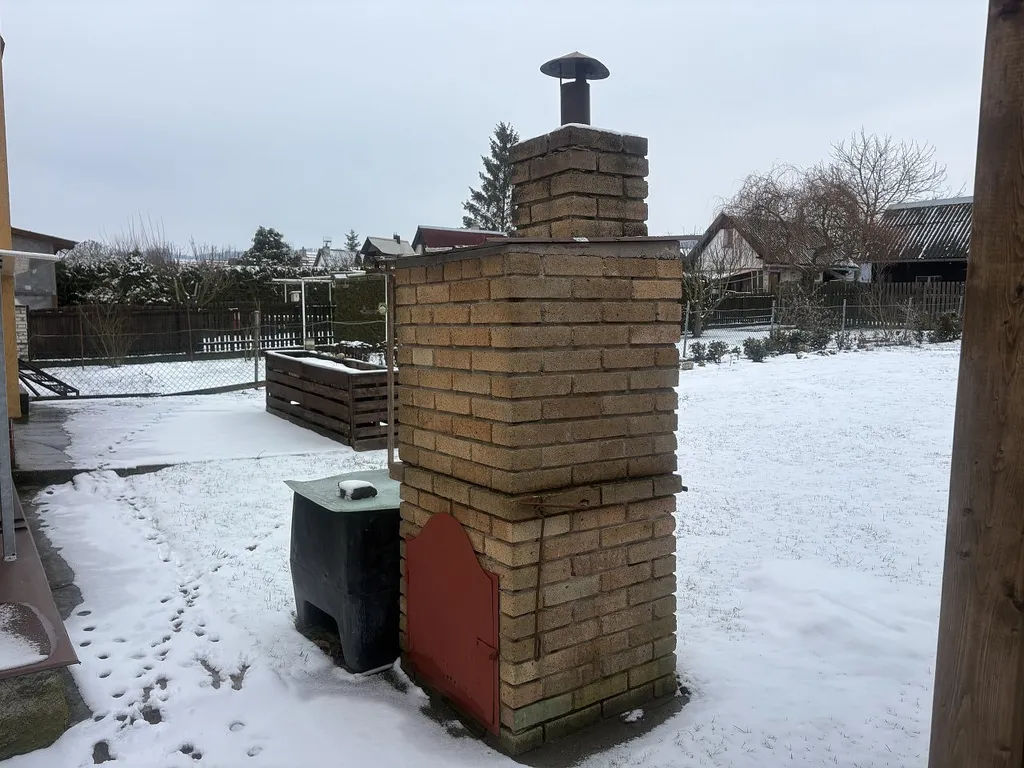 Na pozemku se nachází udírna, pěkný zahradní domek, zpevněná plocha pro posezení a skleník.