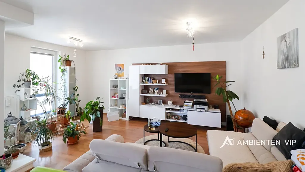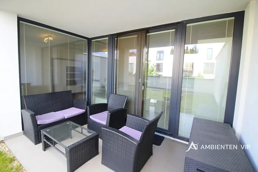 Byt se nachází v 1. NP moderního bytového domu s možností výborného parkování. Byt je částečně vybavený a uspokojí i náročného klienta. Nabízí úložné prostory v rámci vstupní chodby a pokoje, který je orientovaný do ulice. Ten je nyní využíván jako ložnice. Koupelna je vybavena umyvadlem, toaletou, vanou a pračkou. Dále se zde nachází otevřená dispozice kuchyně, jídelny a obývacího pokoje s přímým vstupem na terasu. Terasa má z části dlažbu a zbytek je travní plocha. Její orientace je na JZ. Kuchyňská linka je vybavena spotřebiči Siemens a to varnou deskou, digestoří, lednicí s mrazákem, troubou a mikrovlnnou troubou.