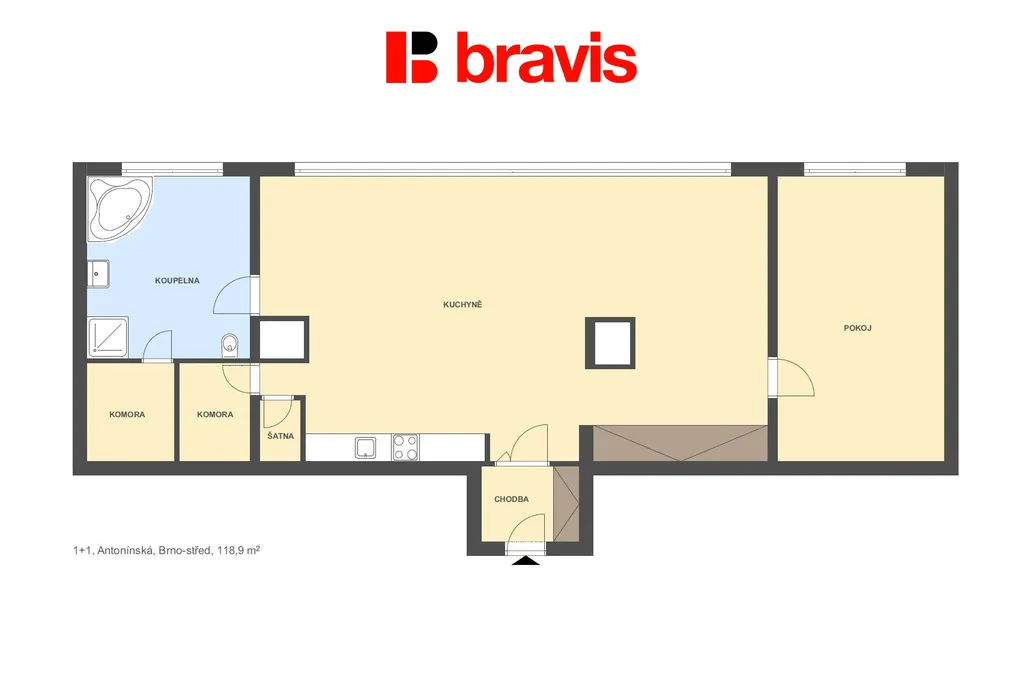 Ve výhradním zastoupení majitele nabízíme k pronájmu hezký, slunný byt 2+kk o velikosti 122 m2 v žádané lokalitě Brno - Veveří na ulici Antonínská. Byt se nachází v 5. NP cihlového domu s výtahem.