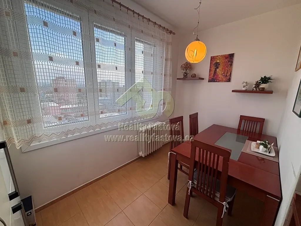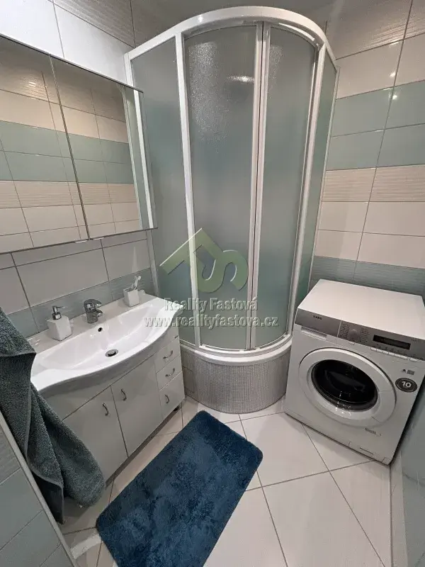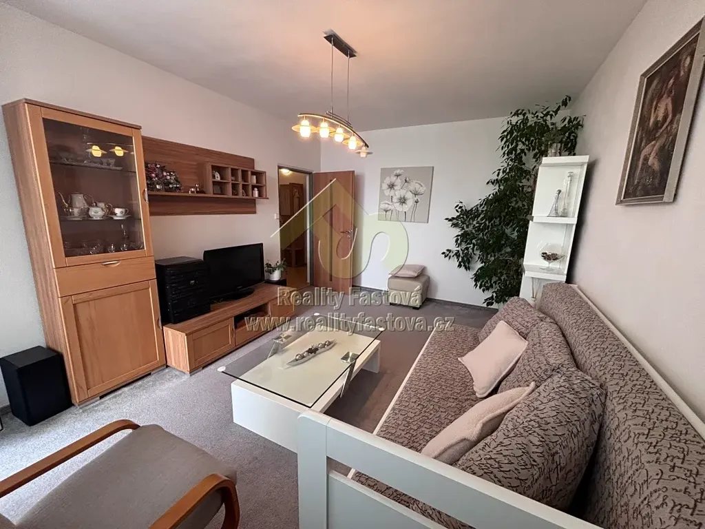 V bytě bude k dispozici veškeré vybavení dle fotek, tzn. kuch.linka vč. vestav.spotřebičů – myčky, plyn.sporáku s el.troubou, digestoří, lednicí s mrazákem. Dále jídelní stůl a židle a další kuch.nábytek. Ve vstupní chodbě je umístěná velká šatní a botní skříň, v prostorné koupelně je osazen sprchový box, skříňkové umyvadlo, pračka a toaleta. V ložnici bude k dispozici rám manželské postele, šatní skříně, komody, pracovní stůl,atd. V obývacím pokoji bude k dispozici obýváková TV stěna a další drobný nábytek.
