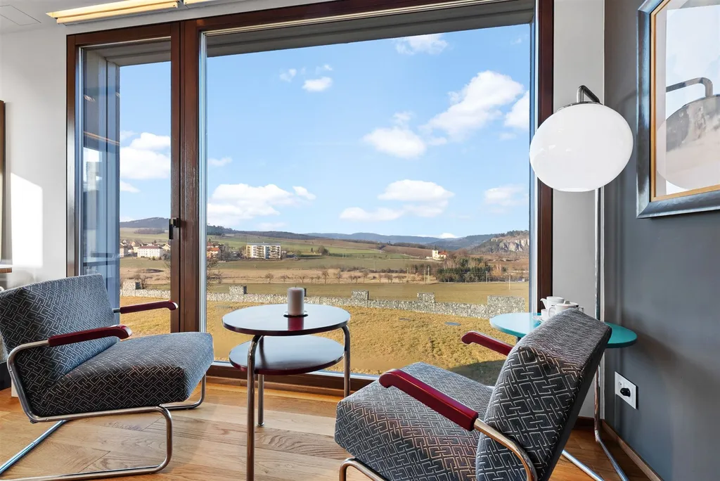 Nabízíme k prodeji výjimečný moderní rodinný dům kolaudovaný v roce 2023, situovaný v obci Tmaň, velice blízko města Králův Dvůr, v klidném prostředí s dostatkem soukromí a dobrou dostupností do Berouna i Prahy. Dům o celkové vnitřní užitné ploše 294 m² je umístěn na pozemcích o celkové výměře 1 634 m², které poskytují nadstandardní prostor pro rodinné bydlení, relaxaci i další rozvoj. Z domu a pozemku se otevírají jedinečné, ničím nerušené panoramatické výhledy na ikonické dominanty Českého krasu – masiv Kotýzu, vrch Zlatý kůň a skalní útvar Aksamitova brána, které dodávají místu výjimečnou atmosféru a prestiž.