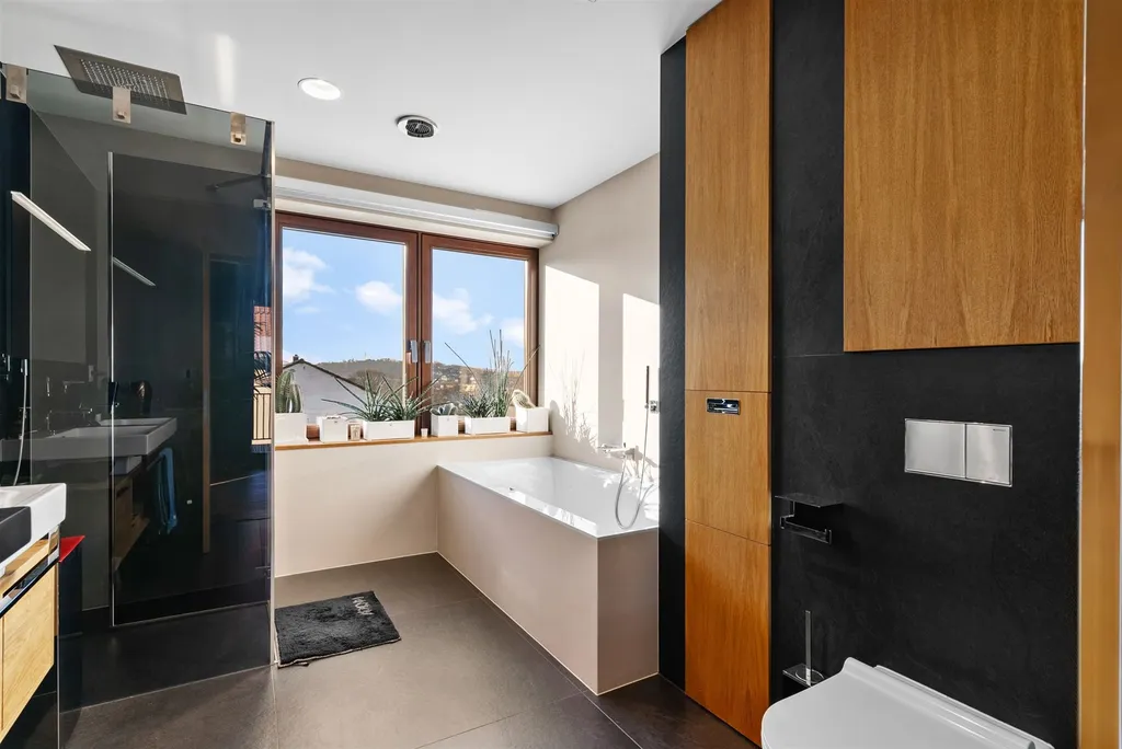 Nemovitost představuje kombinaci kvalitní architektury, moderních technologií a vysokého uživatelského komfortu. V domě je instalováno teplovodní podlahové vytápění s tepelným čerpadlem Vaillant se systémem země/voda. Ohřev vody je řešen kombinací bojleru a tepelného čerpadla. Dům je vybaven inteligentním systémem chytré domácnosti ABB včetně střešní meteostanice. Komfort v letních měsících může zajišťovat klimatizační systém instalovaný v přízemí i patře domu s centrální jednotkou na střeše objektu; po dokončení interiérových jednotek umožní plnohodnotnou regulaci teploty v jednotlivých obytných místnostech dle preferencí nového majitele. Samozřejmostí je zavedená datová přípojka pro vysokorychlostní internet a TV.