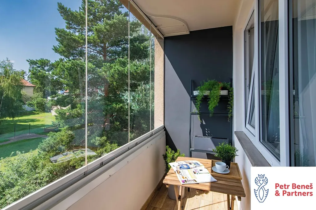 Byt je plně a vkusně vybavený a připravený k okamžitému nastěhování bez nutnosti dalších investic. Velkou předností je zasklená lodžie s výhledem do zeleně, orientovaná na slunnou stranu, která přirozeně rozšiřuje obytný prostor.