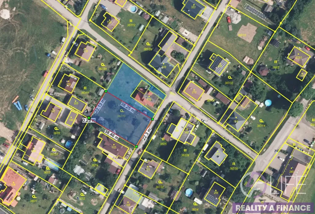 V současné době je pozemek součástí většího celku a bude nově oddělen geometrickým plánem. Výsledná výměra pozemku bude cca 850 m², přičemž přesná plocha bude stanovena po zaměření a schválení geometrického plánu.