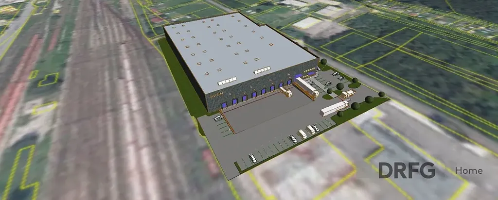 Součástí prodeje je stavební povolení pro výstavbu skladovací nebo výrobní haly o zastavěné ploše 6 232 m2.