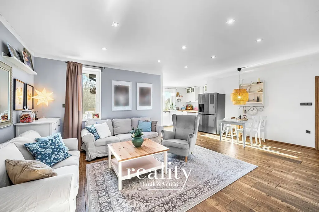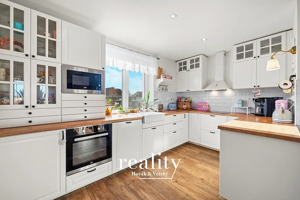 Kuchyně je plně vybavená, světlá a okamžitě připravená k používání. Přirozeně navazuje na jídelní a obývací část a tvoří otevřený, velmi příjemný prostor.