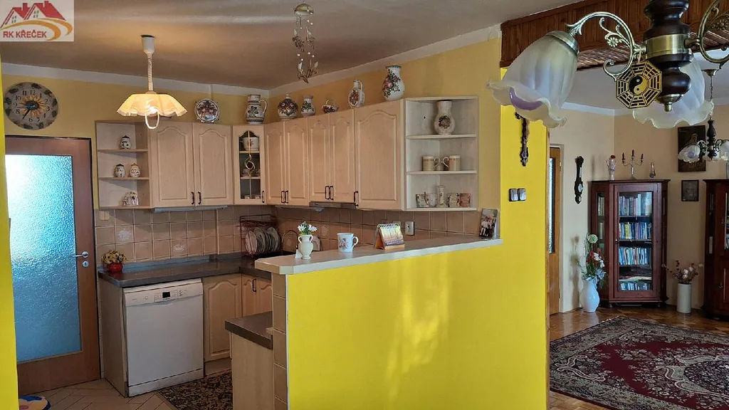 Dům má dispozici 5+kk + pokoj v suterénu. V suterénu domu se tedy nachází garáž, již zmíněný pokoj pro přespání hostů, šatna a špajska, prádelna, koupelna se sprchovým koutem, umyvadlem a WC dohromady, vodárna, která je připojená jak na obecní vodu, tak na studnu. Vytápění domu je novým kondenzačním kotlem. Je zde i vchod do sklepa, který je vhodný i pro vinaře. V přízemí domu se nachází předsíň, velká hala, koupelna s rohovou vanou, 2x umyvadlem a sprchou, samostatné WC, schodištěm do prvního patra a obývací pokoj s kuchyňským koutem se spotřebiči, špajskou, jídelna s oválným stolem, židle, rustikální nábytek, vše z kvalitního dřevěného masívu, obývací pokoj s novou velkou LCD televizí, sedací souprava. Z haly vedou dřevěné schody do 1. patra, kde jsou tři pokoje, z toho jeden pokoj je průchozí, vstupy na balkony (dům má 2 prostorné balkonu), WC. Dům má tepelnou izolaci v omítce s přísadou koloidního stříbra.