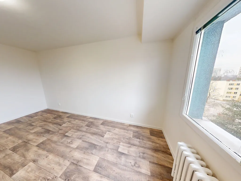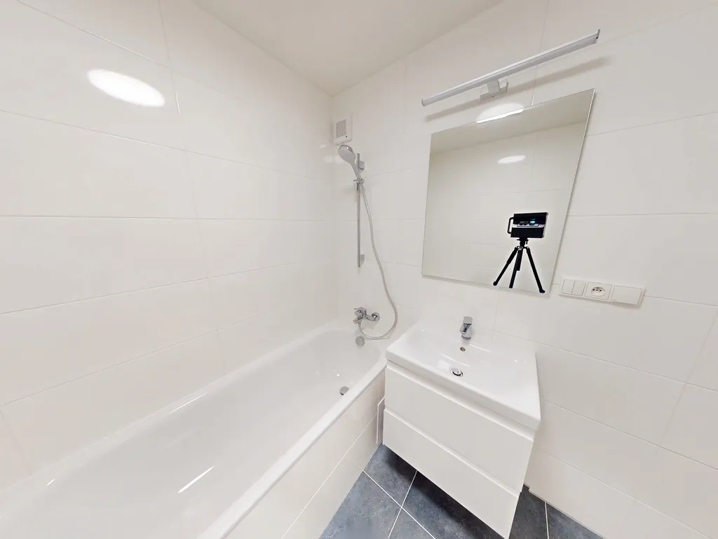 Byt prošel kompletní rekonstrukcí – má nově položenou PVC podlahu, moderní kuchyň na míru s vestavěnými spotřebiči a zděnou koupelnu. V koupelně je vana, umyvadlová skříňka a přípojka na pračku.