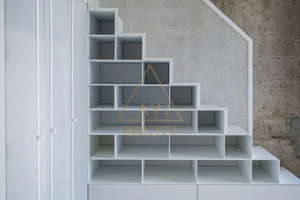 Byt je vybaven luxusní kuchyní se špičkovými spotřebiči, elegantní koupelnou a samostatnou místností, která poskytuje dostatek prostoru pro všechny vaše věci a pračku a sušičku. Dominantou bytu je vestavěné patro na spaní 15m2, které efektivně rozšiřuje obytnou plochu o další užitečné metry. Byt lze dozařídit nábytkem.