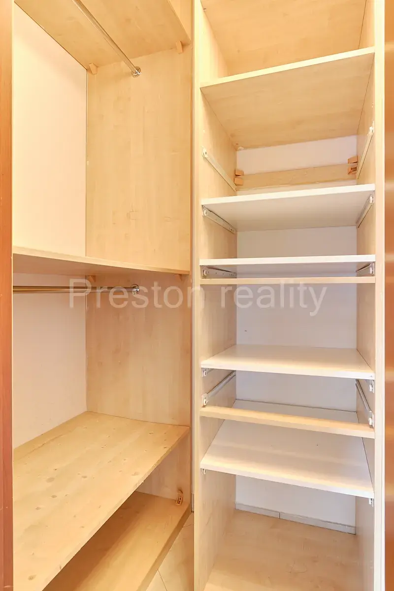 V ložnici se nachází dvojpostel se šířkou 180 cm, matrace budou vyčištěny a k dispozici i s ochranným povlakem. Součástí ložnice je šatní skříň o šířce 150 cm a TV na stěně. Z chodby je přístup do praktické komory nahrazující sklep. Komora o ploše 1,5 m2 má vestavný policový systém.