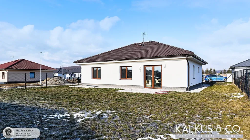 rodáme nadstandardně provedenou zděnou novostavbu 5+kk v obci Sopřeč. Dům typu bungalov se zastavěnou plochou cca 150 m² včetně terasy (užitná plocha 104 m² + cca 18 m² půdního prostoru) je umístěn na rovinatém pozemku o výměře 635 m². Nemovitost je napojena na veškeré dostupné inženýrské sítě – elektřinu 230 V, obecní vodovod i kanalizaci.