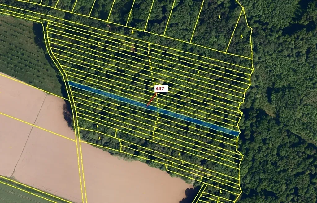 Lesní pozemek o výměře 1989 m2, parcelní číslo 447, podíl 1/1, katastrální území Hradčany na Moravě, obec Hradčany, obec s rozšířenou působností Přerov, okres Přerov, Olomoucký kraj. Po těžbě.