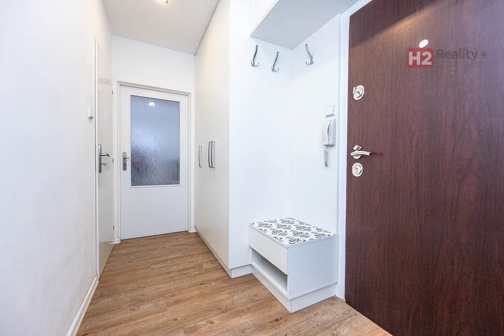 Bytová jednotka je řešena velmi prakticky , disponuje prostorným a prosvětleným obývacím pokojem, samostatnou kuchyní a ložnicí s velkou šatní skříní. Z obývacího pokoje je vchod do první lodžie, z kuchyně do druhé lodžie. Do kuchyně a ložnice je možné vstupovat také přes koupelnu (vybavena sprchovým koutem), čímž je možné mít dvě samostatné uzamykatelné místnosti. Kuchyňská linka je plně vybavena (sklo-keramická deska, trouba, myčka, digestoř) a je připravena pro nové nájemníky. Koupelna a WC jsou oddělené.