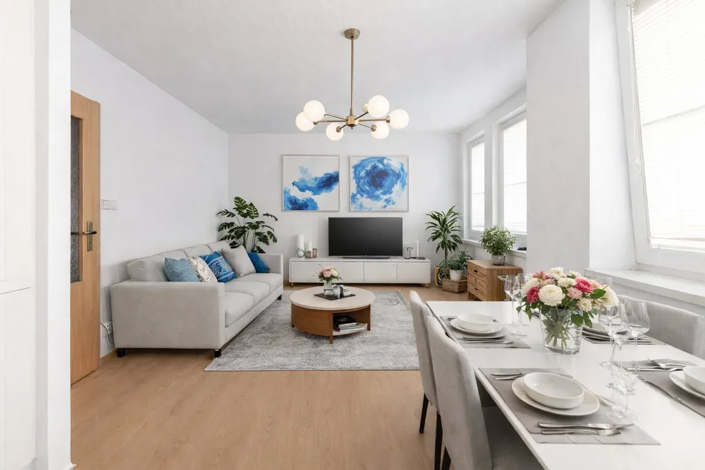 Byt je tak světlý po celý den a nabízí příjemnou atmosféru i ve večerních hodinách.