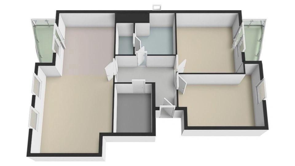 Byt je v inzerci prezentován jako prázdný a doplněný o vizualizace, které slouží pouze pro lepší představu možného zařízení a využití prostoru.