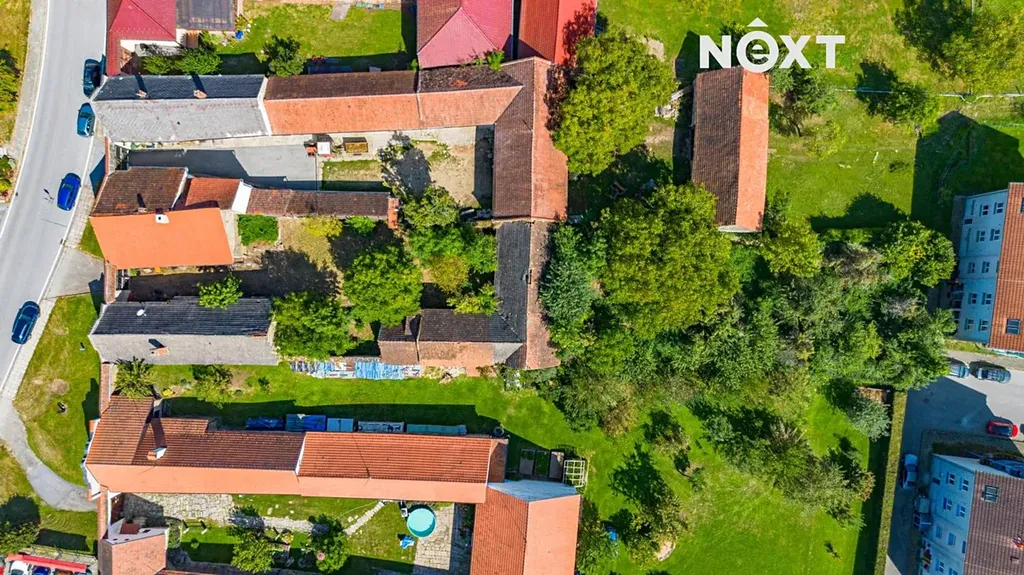 - Další pozemek 841 m² za stodolami s ovocnými stromy.