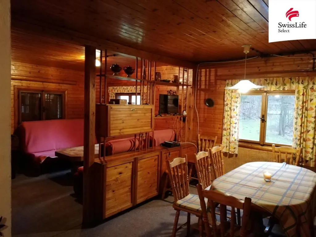 V přízemí chaty se nachází plně vybavená kuchyň s lednicí, rychlovarnou konvicí a mikrovlnou troubou. Dále je zde koupelna se sprchovým koutem a WC, společenská místnost se sedačkou (možnost 2 přistýlek), dvěma křesly, televizí se satelitem a herní stůl na kulečník a stolní fotbálek. Společenská místnost je propojena s jídelnou, ve které jsou krbová kamna na dříví, jimiž je celý objekt vytápěn. V podkroví se nacházejí dvě ložnice (4 lůžka a 2 lůžka) a zastřešený balkon s výhledem na řeku. Samotné parkování je možné přímo u objektu.