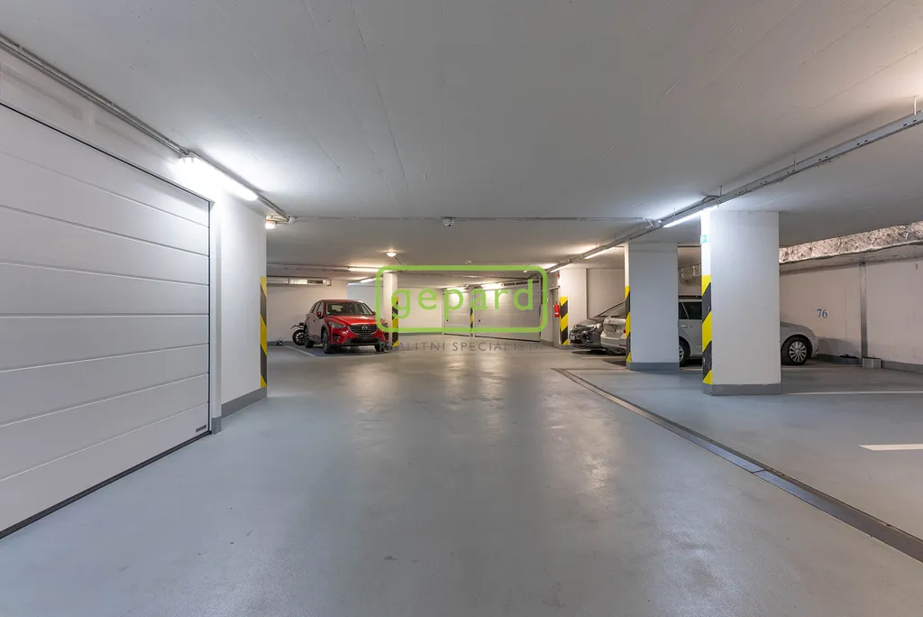 Garážová stání se nachází ve 2 podzemním podlaží domu výborně dostupná od výtahu, jsou umístěna vedle sebe mezi sloupy což zvyšuje jejich atraktivitu a umožňuje lepší využitelnost a manipulační prostor a snadný přístup k automobilům. Sklep je ve stejném podlaží v blízkosti stání, pod samostatným uzavřením, je tedy jednoduchá manipulace při uložení věcí z auta do sklepu. V této lokalitě je poptávka po parkovacích místech vysoká, což zaručuje možnost jejich pronájmu a tím pádem i ziskovost pro investory.