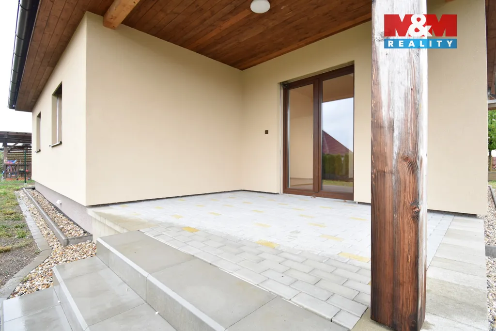 Nabízíme k prodeji atraktivní novostavbu rodinného domu v klidné části obce Hněvousice, katastrální území Sychrov nad Jizerou. Tento přízemní cihlový dům o užitné ploše 136 m² nabízí moderní a praktické uspořádání s velkým obývacím prostorem, který je připraven pro kuchyň a jídelnu. K dispozici jsou tři ložnice, samostatné WC a koupelna s vanou, sprchovým koutem a druhým WC. Z obývacího pokoje se vstupuje na zastřešenou terasu a do zahrady o ploše 574 m², připravené k osázení. Dům nabízí, klimatizaci, přípravu na centrální vysavač. Lokalita je ideální pro milovníky klidu, procházek a cykloturistiky. Veškerá občanská vybavenost je dostupná v blízkém Mnichově Hradišti. Neváhejte a přijďte se přesvědčit o kvalitách tohoto domu!
