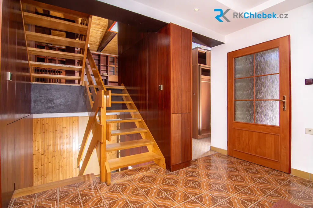 Po schodišti je přístup do sklepních prostor s dostatkem místa pro technické zázemí, skladování či domácí dílnu.