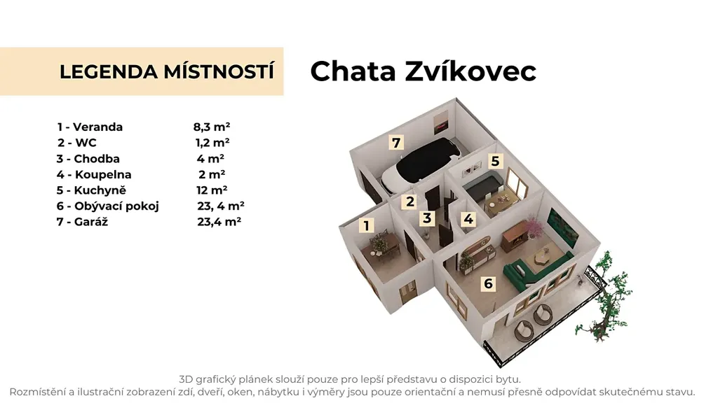 3D grafický plánek nemovitosti, pro lepší představu o dispozici, najdete v galerii.