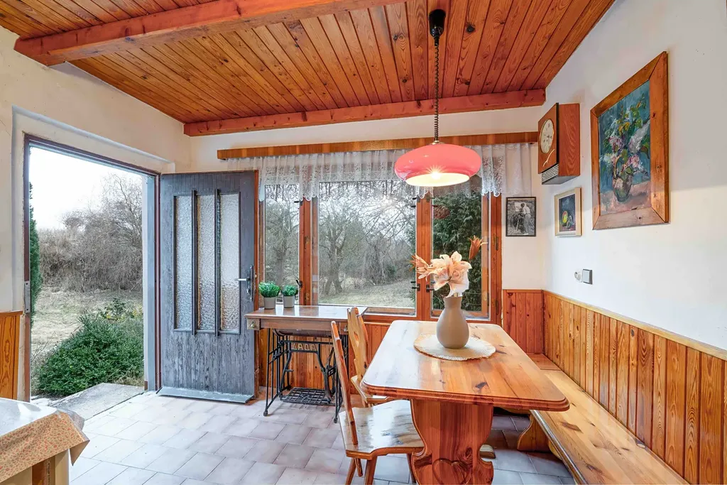 Na pozemku o velikosti 2 330 m² stojí zděná chata se zastavěnou plochou 94 m², umístěná v klidné části obce, bez jakékoli zástavby před domem.