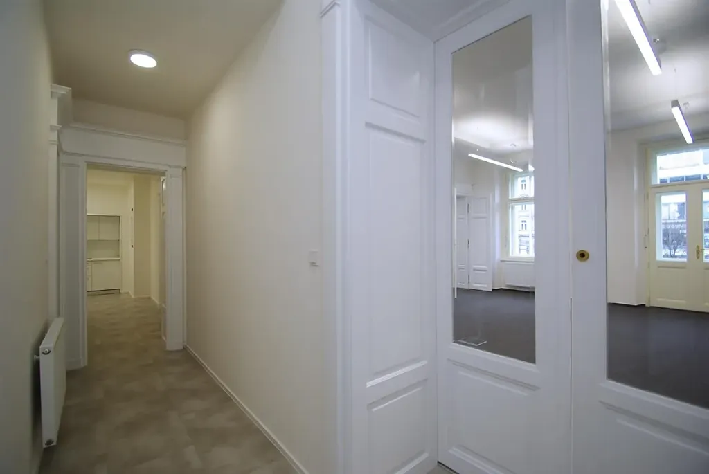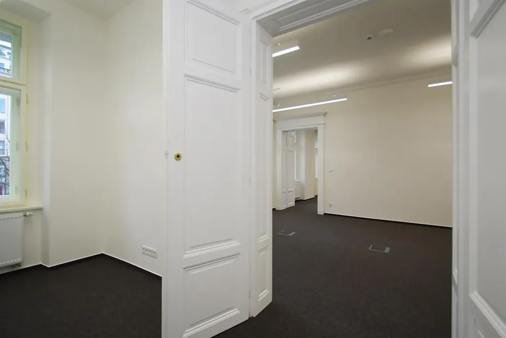 Klimatizované kancelářské prostory 3+1, o celkové užitné ploše 133,9m2, jsou situovány v prvním patře zrekonstruované historické budovy s výtahem, v prestižní lokalitě Nové Město na Praze 1, na Václavském náměstí.
