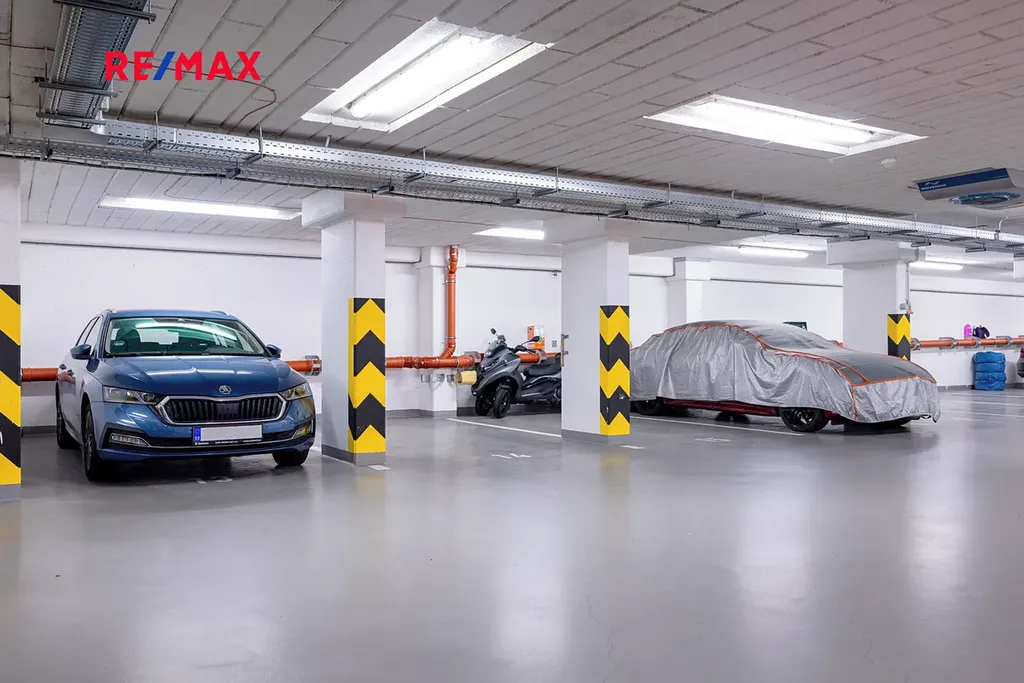 Velkou předností bytu je prostorný balkon, který nabízí příjemný prostor pro odpočinek. Součástí pronájmu je také sklep a vlastní garážové stání v domě, což výrazně zvyšuje komfort bydlení.