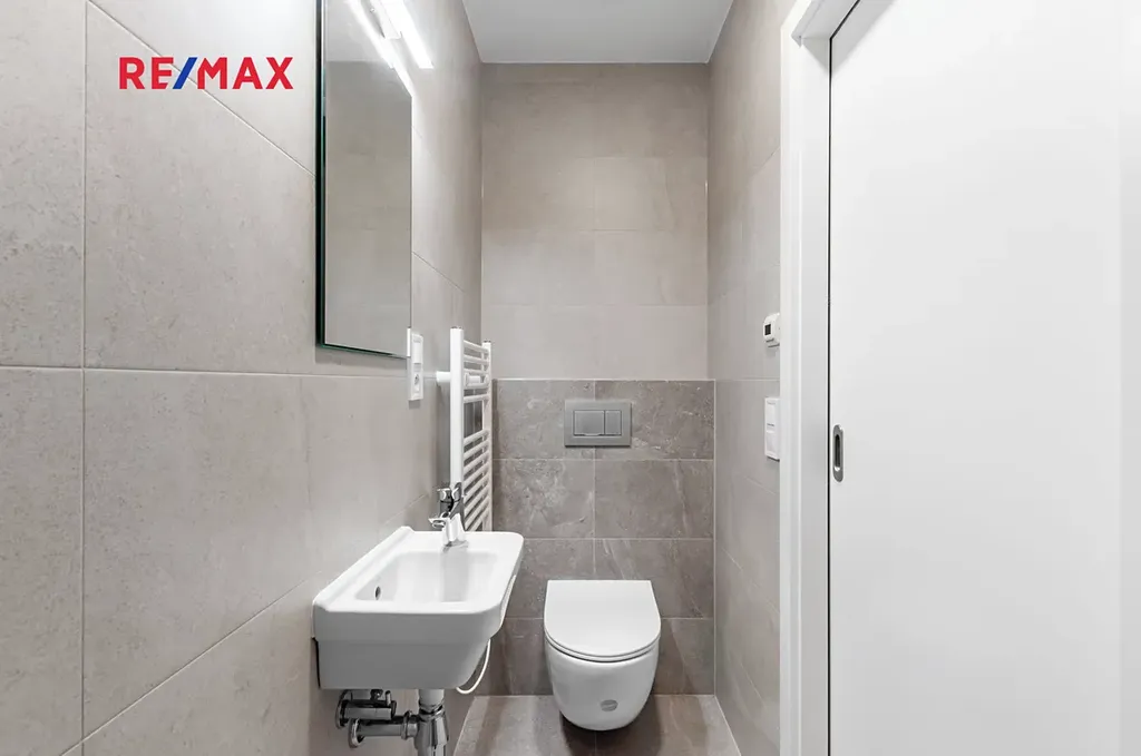 a samozřejmostí je i klimatizace. Byt se nachází v prvním a druhém nadzemním podlaží. Z prostorné vstupní haly (7 m2) doplněné menší komorou a vestavnou skříní se vchází do chodby odkud jsou přístupné tři místnosti, dvě ložnice (každá 10 m2) a pracovna či další ložnice pro hosty (7 m2). Z jedné z těchto ložnic je i přímý výstup na spodní část pozemku, která se užívá pouze s tímto bytem. V tomto podlaží je k dispozici ještě koupelna s vanou a WC a také samostatné WC s umyvadlem. Z chodby vystoupáte po dřevěném schodišti do velkorysého obývacího pokoje o velikosti 42 m2 s kuchyňskou linkou. Ta je vybavena lednicí s mrazákem, myčkou, dřezem, varnou deskou a elektrickou troubou. Odvětrání je zajištěno pomocí digestoře. Z obývacího pokoje za kuchyní pak vejdete do ložnice rodičů (13,6 m2), která je doplněna vlastní koupelnou se sprchovým koutem a WC. Více v přiložených půdorysech. Dominantou obývacího pokoje je velká prosklená stěna, na kterou navazuje zpevněná dřevěná terasa (15 m2) s jižní orientací. Okolo východní a jižní strany bytu se nachází dvouúrovňová předzahrádka spojená schodištěm. U vstupu do bytu pak jsou k dispozici 2 parkovací stání, která je možno si pronajmout spolu s bytem - obě za 3.000,- Kč měsíčně.