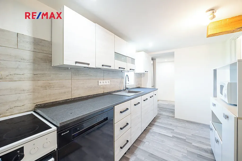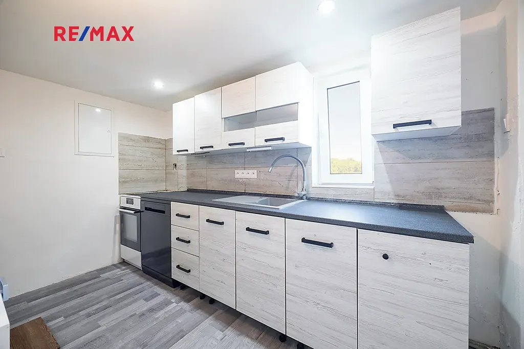 V přízemí se nachází koupelna s toaletou, kuchyň a technické zázemí. V prvním patře je obývací a spací prostor s krásným výhledem na protější kopec a pod střechou je možno prostor využít ke spaní nebo jako pracovní kout.