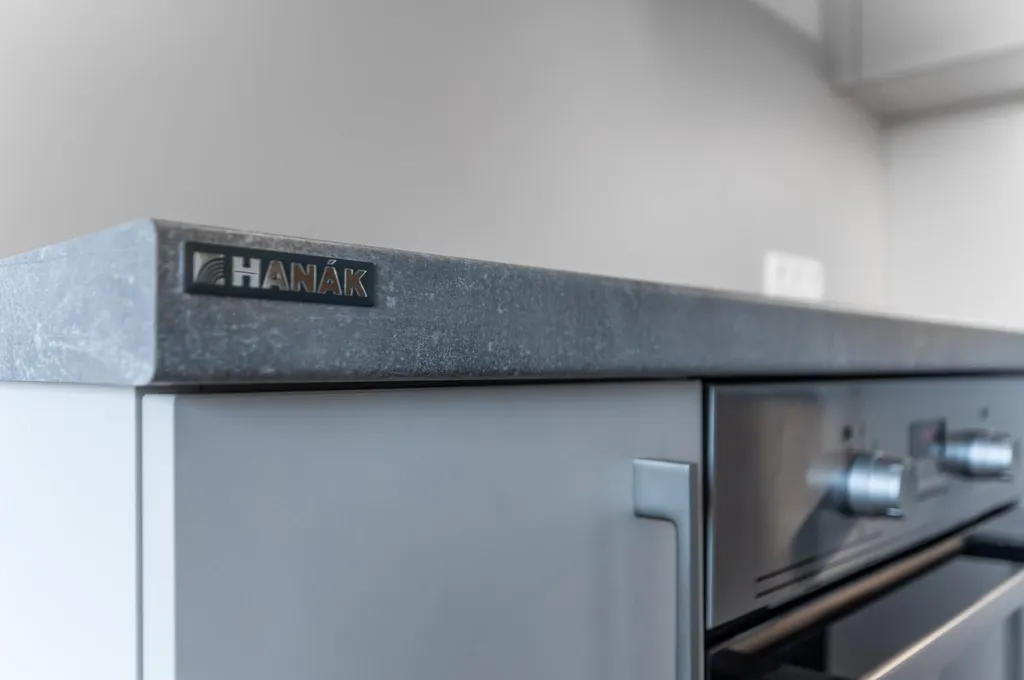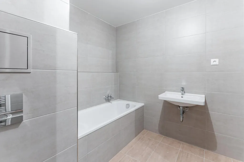 Dispozice zahrnuje obytný prostor s kuchyňským koutem vybaveným kvalitními spotřebiči, samostatnou ložnici, koupelnu se sprchovým koutem a WC a vstupní chodbu s vestavěnou skříní. K bytu náleží balkon a sklepní kóje. Byt je světlý, vzdušný a nabízí komfortní městské bydlení.