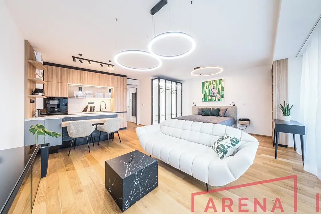 Nabízíme k pronájmu exkluzivní, kompletně a luxusně zařízený byt o velikosti 54,2 m² s prostornou terasou 13,8 m², nacházející se v moderním rezidenčním projektu INSADY v atraktivní lokalitě Nové Sady, Brno.