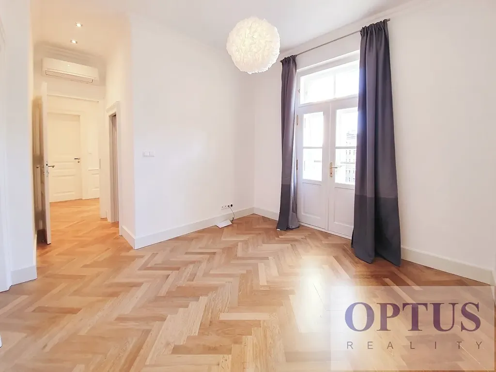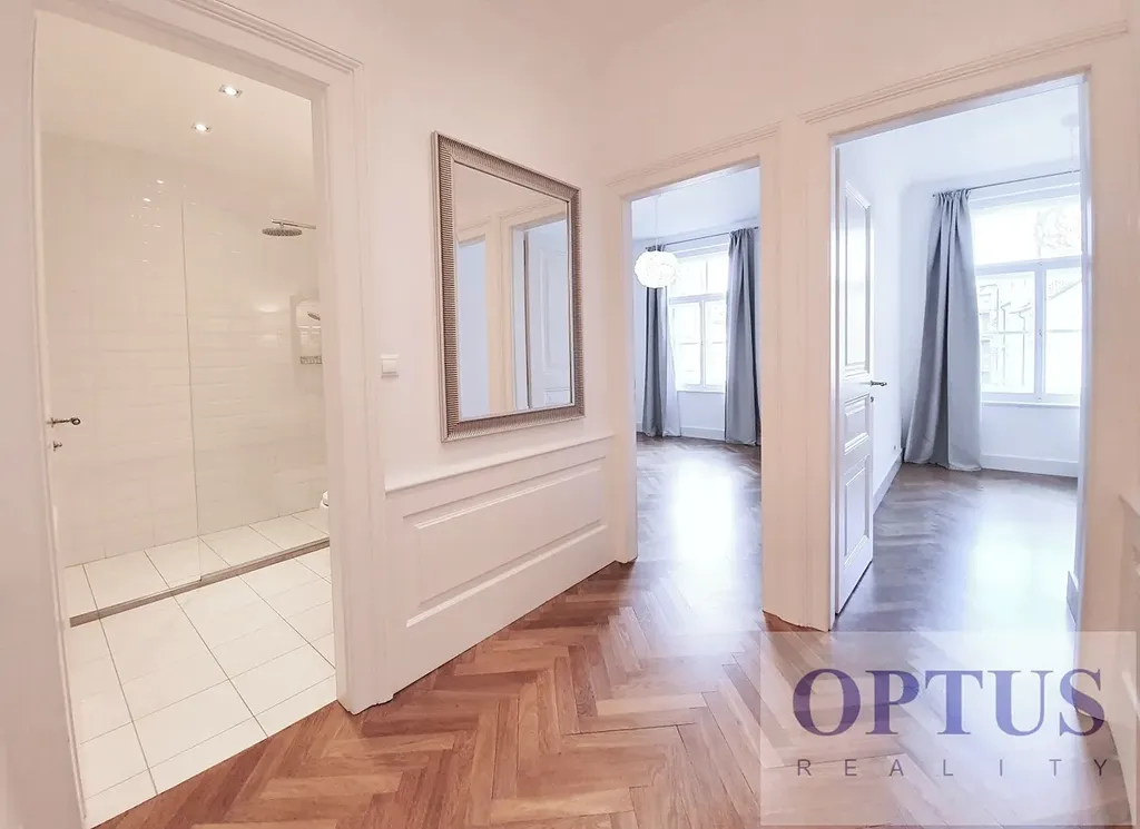 Luxusní kompletně zrenovovaný byt 5 + kuchyňský kout (celkem 172 m2) + balkón; byt se nachází ve 4. patře zrenovovaného secesního domu s výtahem; žádný z bytů v domě není určen pro krátkodobé ubytování. V suterénu domu je k dispozici luxusní privátní wellness centrum včetně vnitřního bazénu (10 x 3.8 m), sauny a prostoru na jógu/fitness. Wellness je určeno výhradně pro rezidenty tohoto domu, vstup je bezplatný na základě samostatné smlouvy o užívání uzavřené s majitelem domu a nájemce si může každý den rezervovat časový úsek pro soukromé užívání celého wellness.