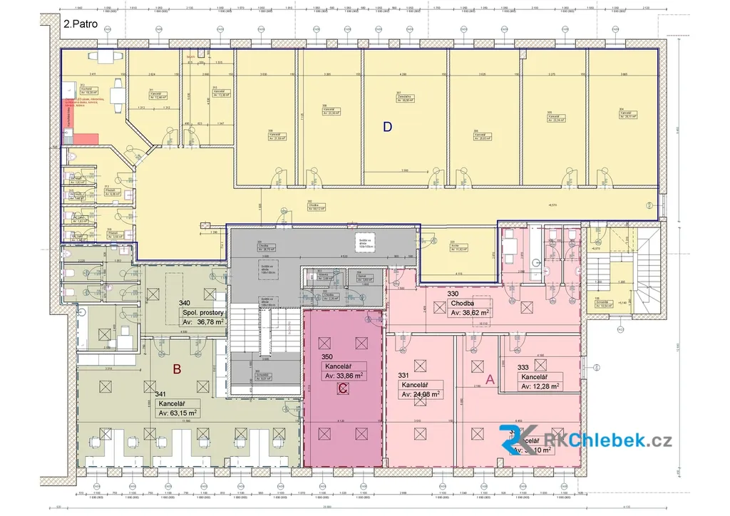 • jednotlivé kanceláře (D) 12–31 m²