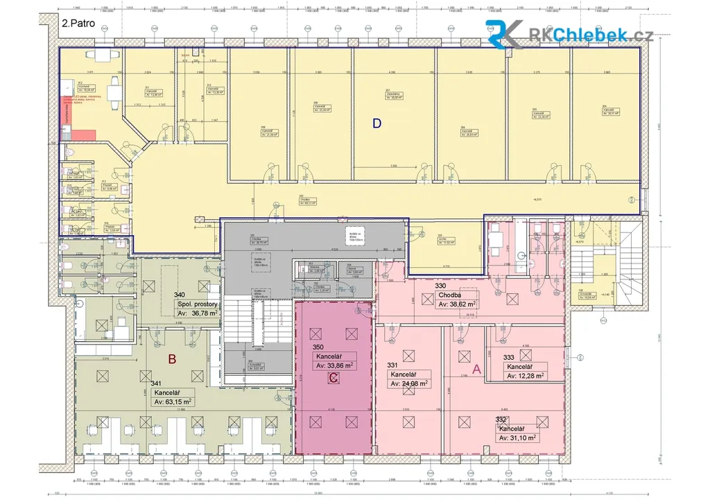 • kanceláře v hlavní budově (3. NP, vstup A3) – od 12 m² do 553 m² (cena od 140 Kč/ m² měsíčně + služby)