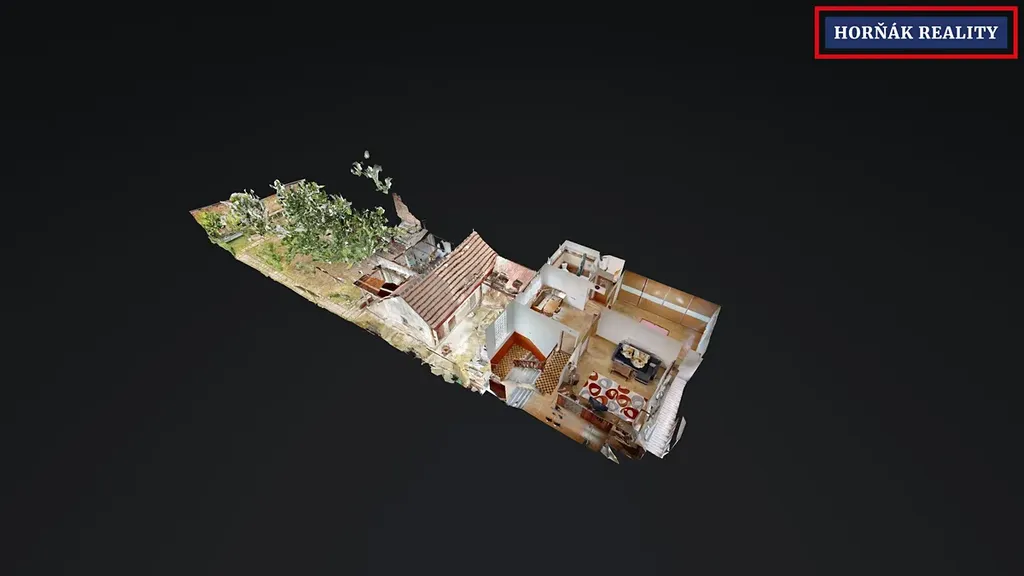 Ze zadní části domu je vstup na dvůr s pergolou, který navazuje na menší hospodářskou budovu. Za ní se nachází rovná a udržovaná zahrada – ideální pro relaxaci nebo domácí pěstování.
