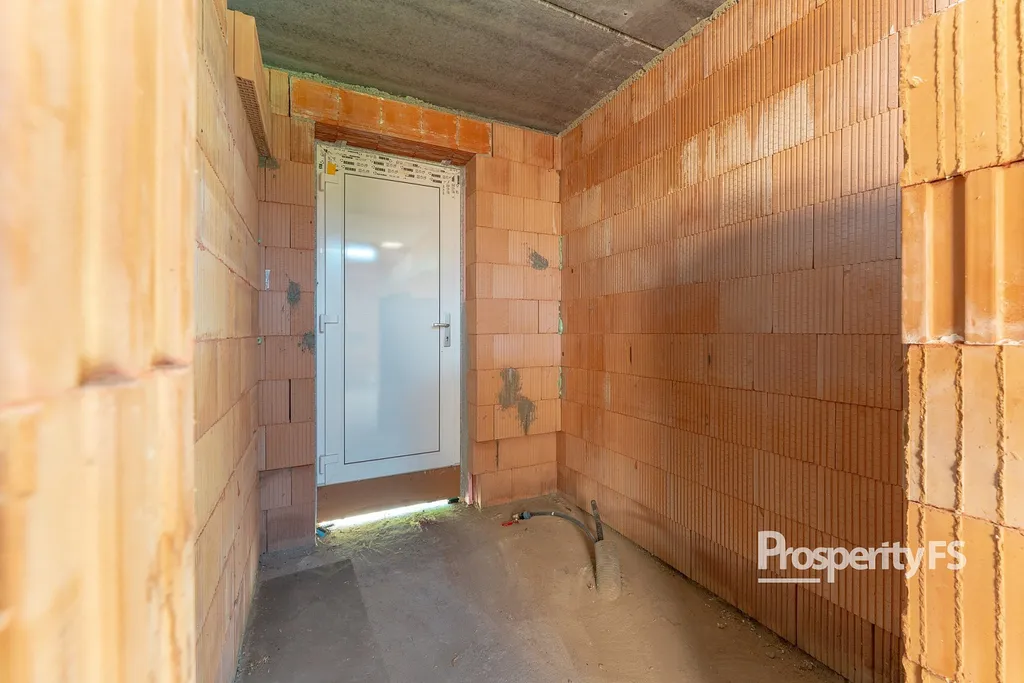 Stavba je realizována z kvalitních cihel Heluz Family 50 cm, které díky svým izolačním vlastnostem nevyžadují dodatečné zateplení. Osazena jsou plastová okna značky Sulko s trojsklem, střecha je z betonových tašek. K dispozici je také další stavební materiál – cca 3–5 palet cihel a komínový komplet.