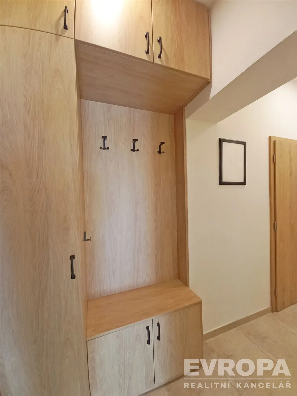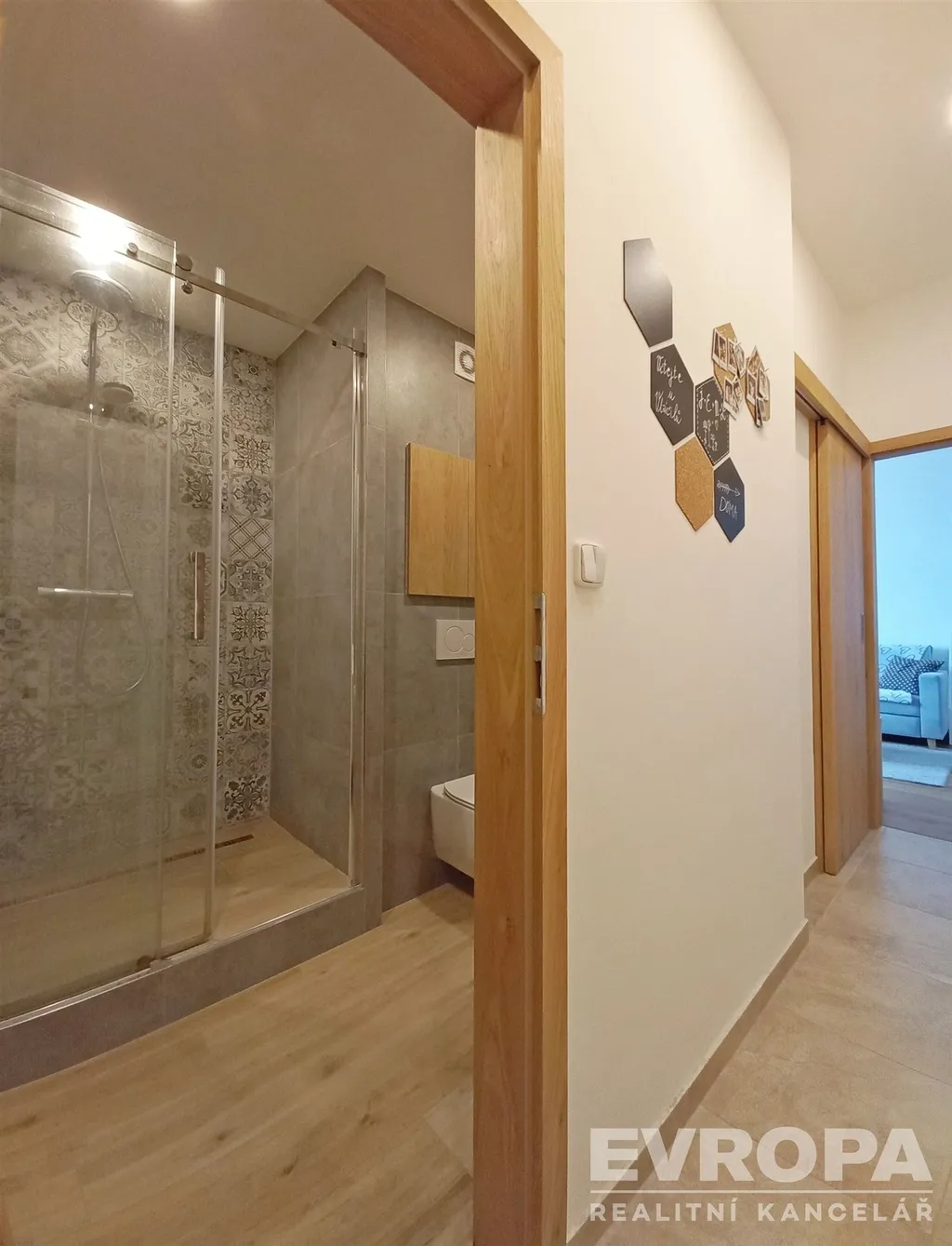 V obytných místnostech je položena kvalitní dřevěná podlaha, v chodbě praktická dlažba. Významným benefitem je také vestavěný nábytek – skříně v chodbě i ložnici a obývací stěna, který zůstává součástí bytu.