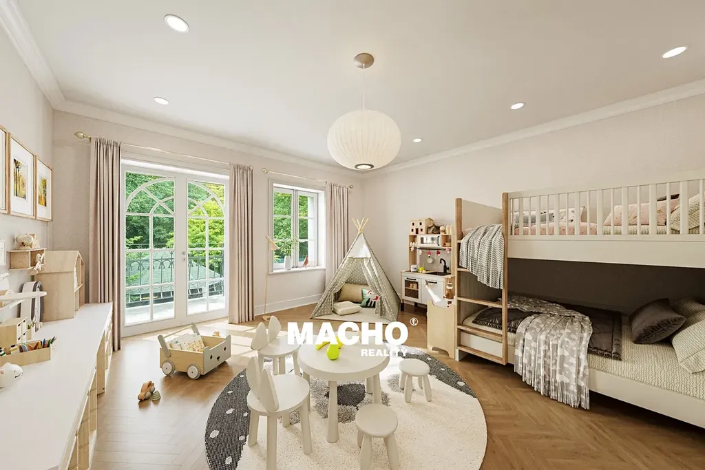 - Luxusní rodinné bydlení – komfortní dispozice s ložnicemi, dětskými pokoji, společenskými prostory i pokoji pro hosty.