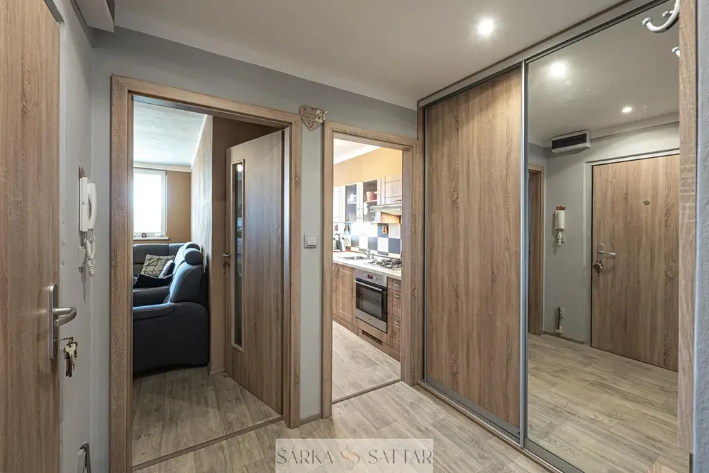 Tento zrekonstruovaný byt s výhledem do okolí a skvělou dispozicí poskytuje komfortní bydlení.