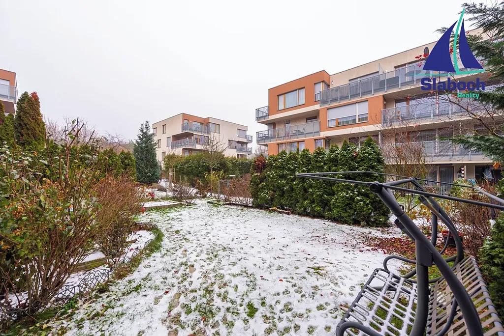 Bytová jednotka se nachází v přízemí třípatrového moderního cihlového domu s výtahem, v bytě dominuje obývací pokoj (27m2) s kuchyňským koutem včetně kuchyňské linky se spotřebiči a se vstupem na vlastní prostornou zahradu (131m2) s terasou, dětský pokoj (24m2), ložnice (15m2) taktéž se vstupem na zahradu a terasu, skvěle řešená chodba (14m2) využitá jako pracovna, koupelna (8m2) s toaletou a místem na pračku a sušičku, komora či šatna (4m2), předsíň (6m2) a další samostatná toaleta (2m2). Na podlaze kvalitní dřevěné podlahy a dlažba, francouzká dřevěná okna díky nímž je byt světlý.