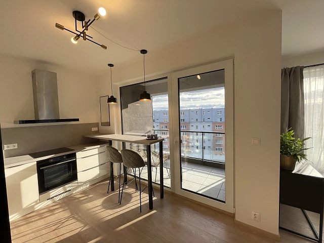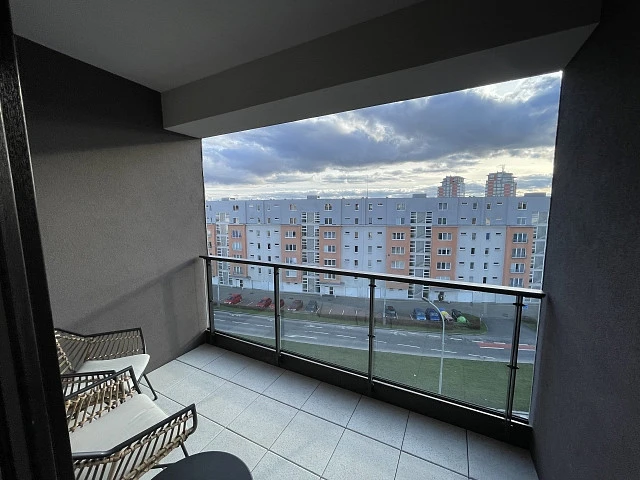 Atraktivní bydlení, v novém bytě projektu Green Port Strašnice. Byt nově zařízený, Garáž, sklep.
