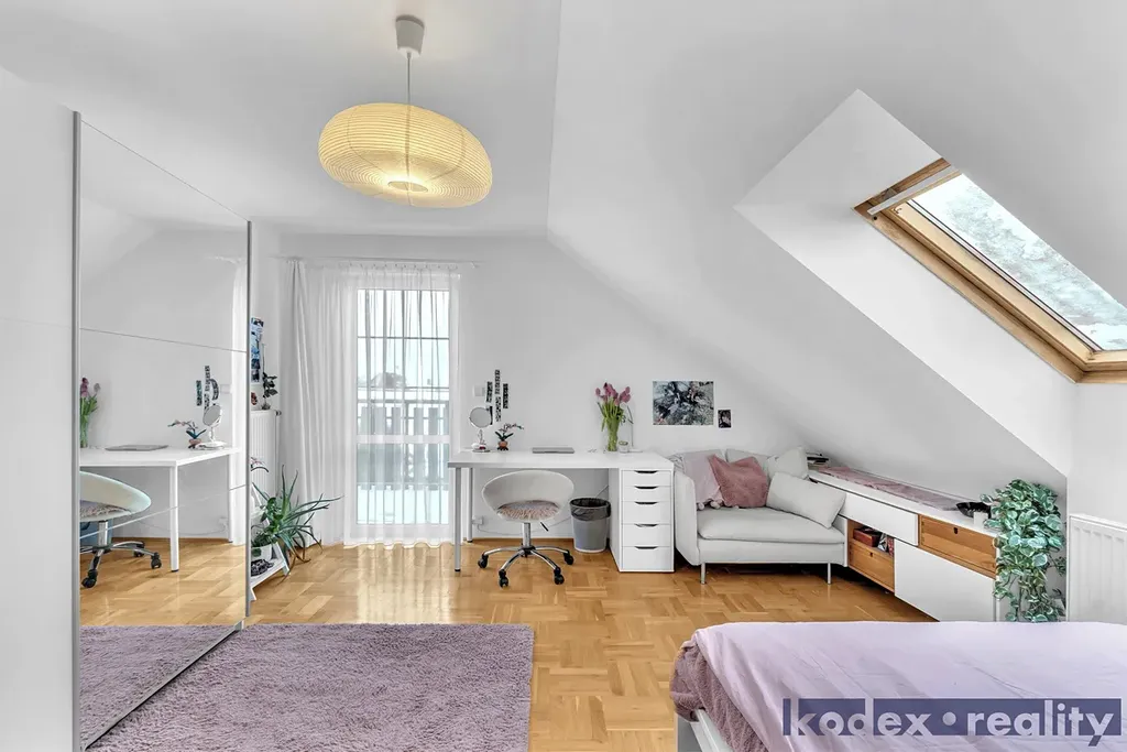 1.NP - chodba se vstupem na úložnou půdu, pokoj pro hosty/pracovna, 2x dětský pokoj, koupelna s WC a velká technická místnost s úložným prostorem, plynovým kotlem a pračkou.