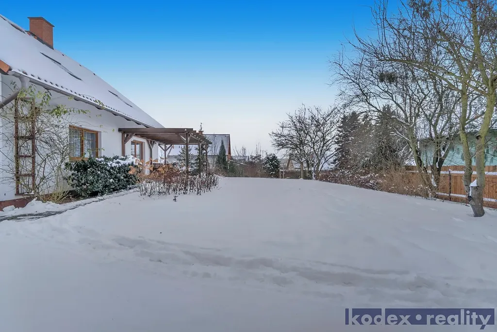 Nemovitost byla postavena ze železobetonové molitické konstrukce KEWO-LITH se zateplením. Vytápění objektu zajišťuje plynový kotel s rozvodem do radiátorů a podlahy a také krbová kamna v obývacím pokoji. Je rovněž instalován centrální vysavač. Podlahy v obou patrech jsou z pravých voskovaných parket. Pozemek je kompletně oplocen a v přední části je el. posuvná brána na dálkové ovládání, branka ke vchodu a druhá záložní brána pro zpřístupnění zahrady technikou. V zadním rohu pozemku je postaven zděný zahradní domek s krytým přístřeškem. Z obývacího pokoje je přístup na velkou terasu s pergolou. Před dvougaráží je parkovací plocha pro návštěvy.