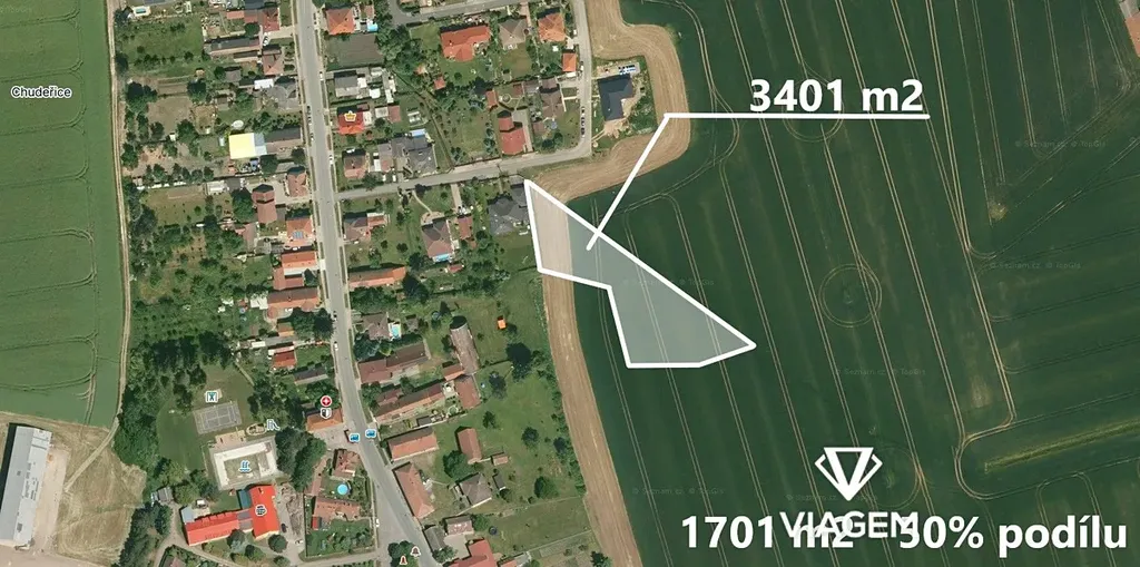 Nabízíme Vám následující pozemky v katastrálním území Chudeřice: Jedná se o 50% podíl! o výměře 1701 m2 z celkové 3401 m2