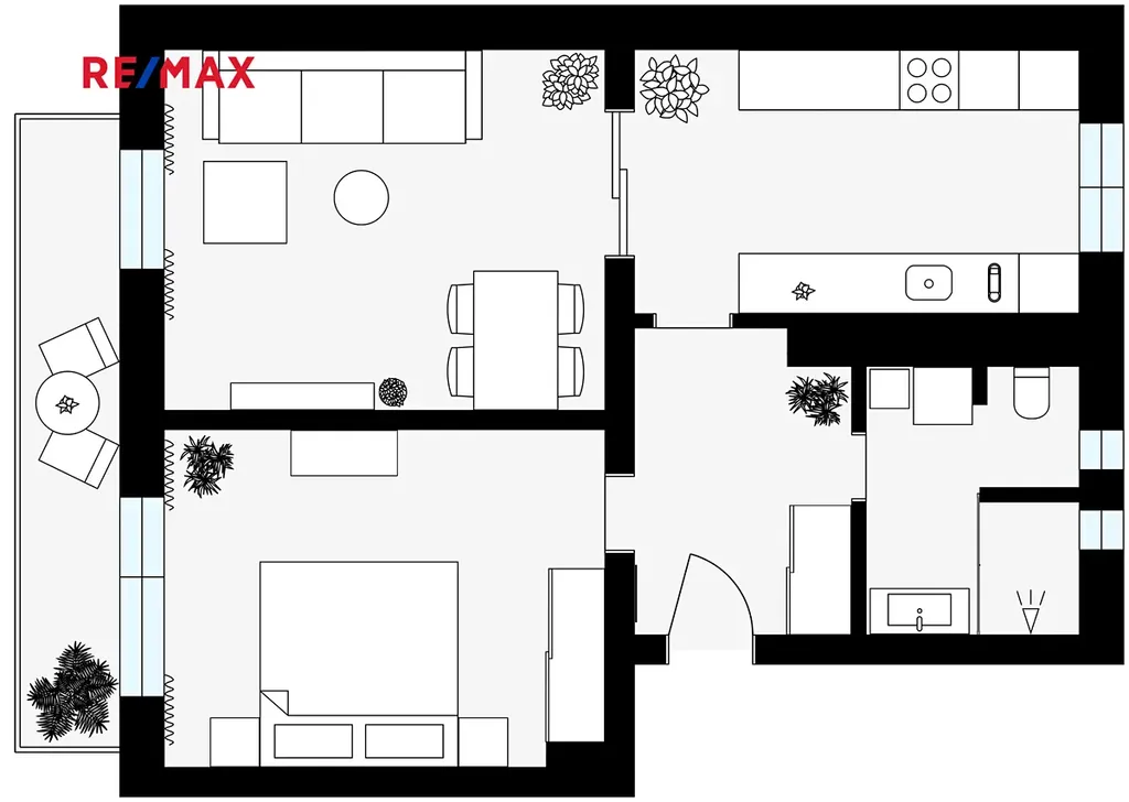 Balkón je orientován na jihovýchod a nabízí výhled do zeleně se vzrostlými stromy, ideální místo pro ranní kávu nebo klidné posezení. Ložnice a koupelna jsou orientovány na severozápad.