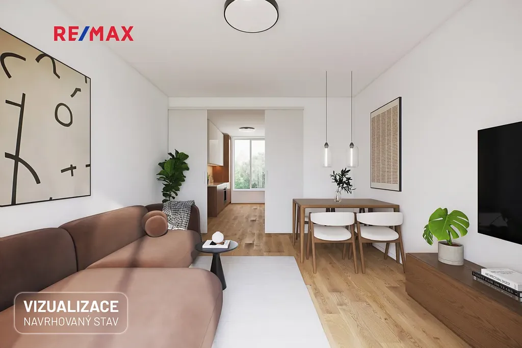 Součástí nabídky jsou vizualizace pro inspiraci, znázorňující možnou podobu obývacího pokoje, kuchyně a ložnice.