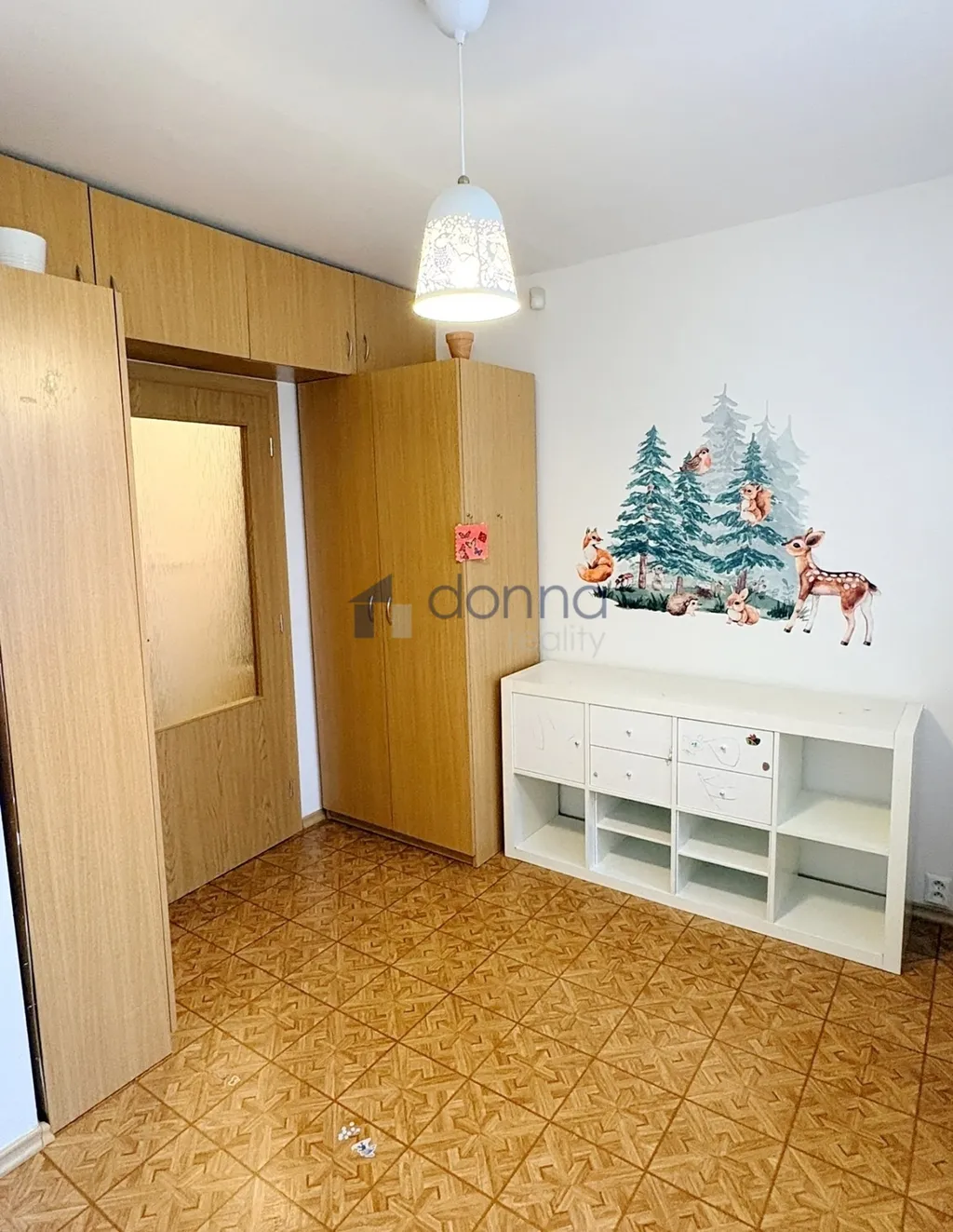 V bytě je prostorná ložnice s velkou vestavěnou skříní, dále dva menší (dětské) pokoje a pracovna.