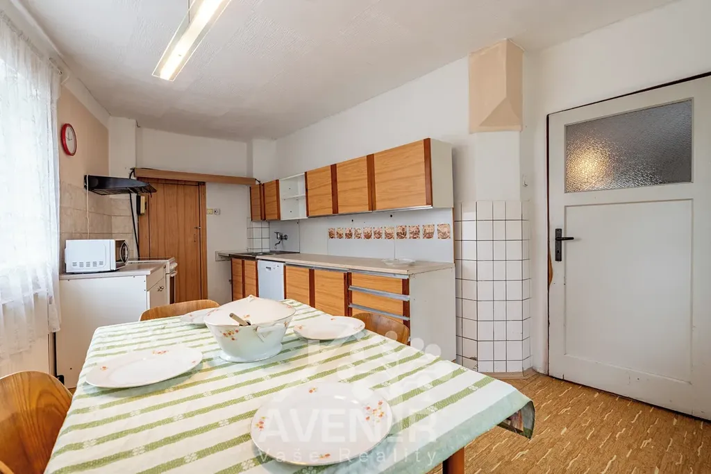 V přízemí domu najdete kuchyni, prostorný obývací pokoj, spíž, koupelnu a nebytový prostor, který dnes slouží jako dílna či sklad, ale může se proměnit v garáž, technické zázemí nebo pracovnu. V patře jsou čtyři samostatné pokoje a nad nimi půda, která přímo vybízí k dalšímu rozšíření obytné plochy.