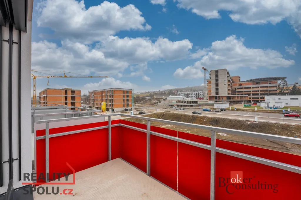 Nabízíme k pronájmu světlý byt 2+kk o užitné ploše 56 m² ve 4. patře novostavby s výtahem. Byt disponuje prostorným obývacím pokojem s kuchyňským koutem vybaveným moderními spotřebiči, ložnicí, koupelnou se sprchovým koutem a WC. Balkón s příjemným výhledem, vlastní parkovací stání a sklepní kóje jsou součástí nabídky. Okna jsou opatřena předokenními žaluziemi.